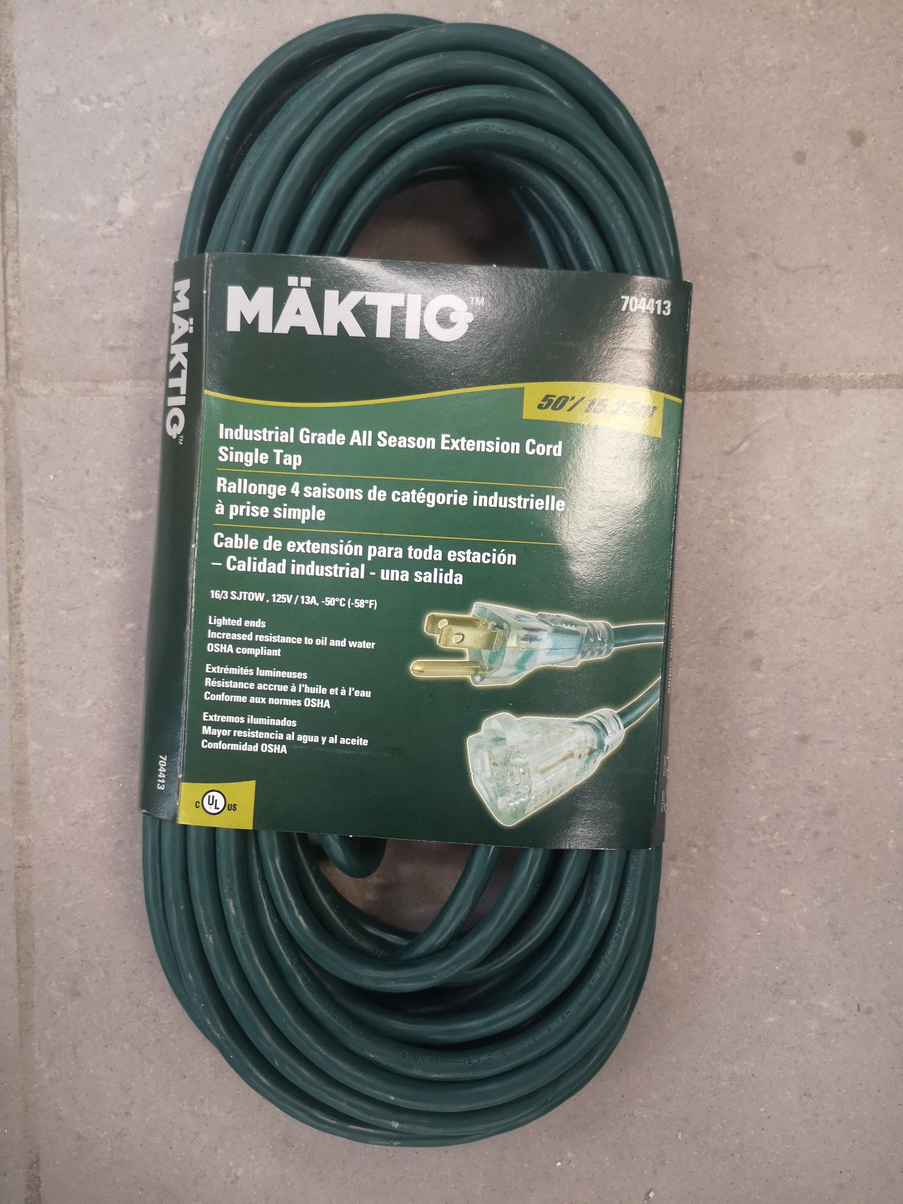 Rallonge industrielle 50 pieds, Calibre 16 avec bout lumineux